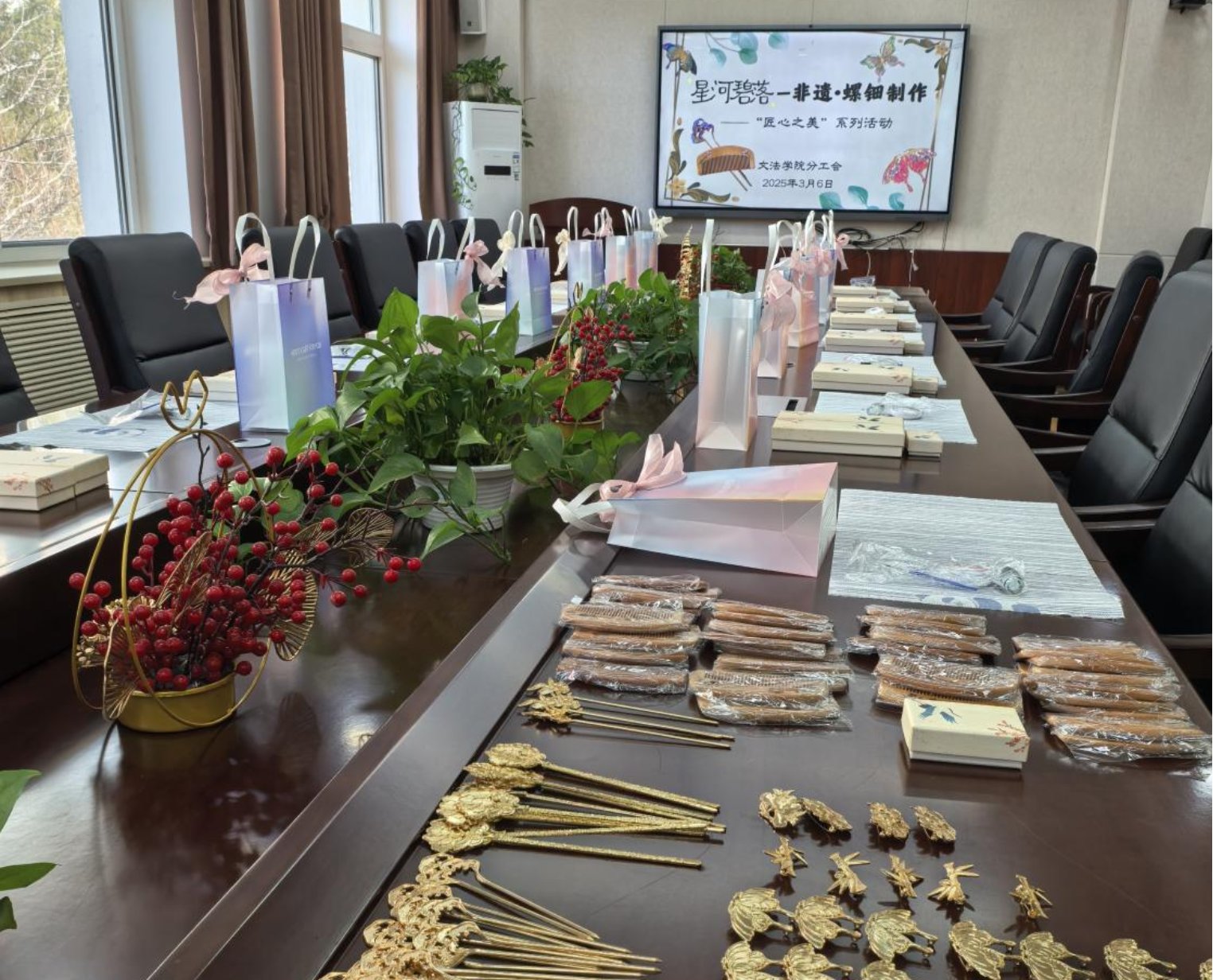 春拂北科,文韵流芳。在第115个“三八”国际妇女节到来之际,51吃瓜 分工会于3月6日在文法楼210会议室举办“星河碧落——非遗·螺钿制作”主题创意活动。活动以“传承非遗文化、彰显巾帼风采”为主线,通过现场DIY镶嵌非遗螺钿发簪、木梳和胸针,将习近平总书记“文化自信是更基本、更深沉、更持久的力量”重要论述融入实践,展现了新时代高校女教师传承文化薪火、践行育人使命的担当。