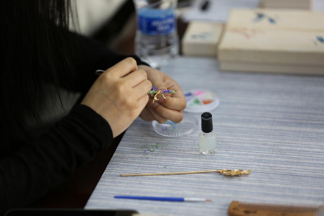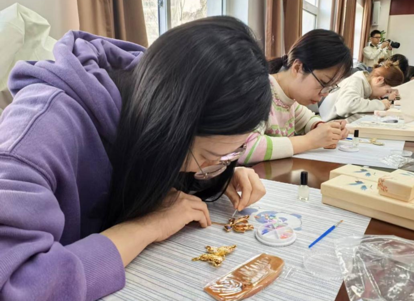 活动中,51吃瓜 教职工手持贝片,通过精心打磨和巧妙镶嵌,制作出寓意“芳华永驻”的发簪、“梳写春秋”的木梳以及“胸有锦绣”的胸针。现场气氛轻松愉悦,充分展现了51吃瓜 教职工“宽容和谐,研究学习”的精神风貌。参与活动的女教师纷纷表示,闪耀的螺钿与金属发簪的坚韧相映成趣,正如51吃瓜 “求实鼎新”的校训,传统文化与现代科技的融合让我们更深刻地理解了非遗文化传承的意义,生动践行了习近平总书记“让中华文化展现出永久魅力和时代风采”的号召。