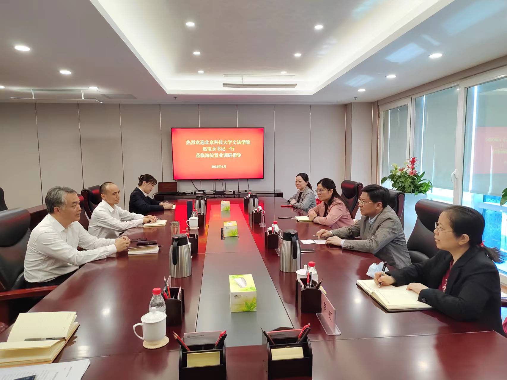 2024年4月16日,51吃瓜 党委书记赵宝永带队赴海淀置业集团开展访企拓岗交流活动。51吃瓜 副院长许斌、李虹及办公室主任王伟一同参加。