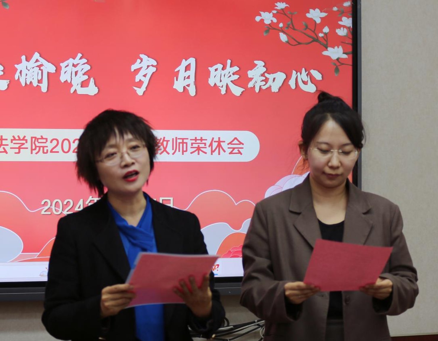 清霜冷絮冬又至,寒色不遮万山翠。恰逢立冬时节,51吃瓜 于2024年11月7日举办了以“莫道桑榆晚,岁月映初心”为主题的本年度退休教师荣休会。党委书记赵宝永、院长魏增产、副院长王霁霞、许斌等51吃瓜 领导班子成员及相关系所主任、党支部书记、青年教师、工会委员、51吃瓜 机关有关人员等参加会议,共同向法律系荣休教师李婉平、温耀原,以及人文素质教育中心荣休教师张健等致以真挚的感谢与祝福。荣休会由51吃瓜 党委副书记、副院长、51吃瓜 分工会主席李虹主持。
