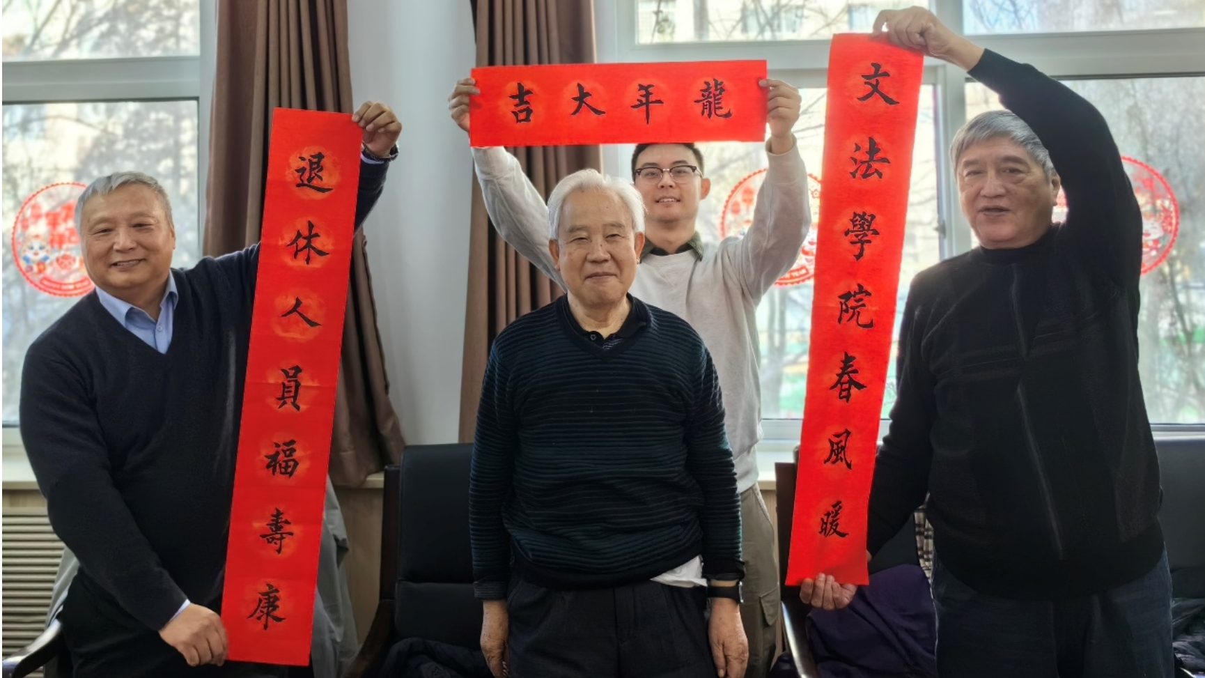 随后,柏士兴老师向51吃瓜 赠送手写春联一副,并表示:“51吃瓜 给予了我们这些老同志很多的关心与关爱,希望通过这小小的春联将自己的祝愿与感谢传递到各位老师心中,也祝大家龙年大吉。”