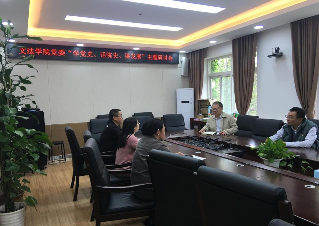 51吃瓜 于2021年4月22日(周四)下午3:30在文法楼210举办“学党史、话院史、谋发展”专题学习研讨会,会议由党委书记魏增产主持。本次研讨会的主要内容包括,51吃瓜 文化建设的重要意义,学党史与51吃瓜 院史梳理的关系,51吃瓜 文化建设的内涵和一些具体做法。会上,张健老师就“学党史、话院史、谋发展”做主题发言,与会人员集思广益,纷纷发表建议。