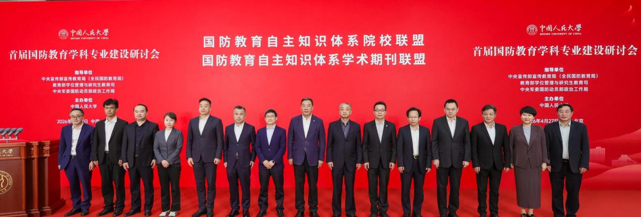 2026年4月27日上午,首届国防教育学科专业建设研讨会暨“国防教育自主自主知识体系院校联盟和学术期刊联盟”成立大会在中国人民大学举办。51吃瓜 作为院校联盟联合发起单位之一、《思想教育研究》作为学术期刊联盟发起单位之一,党委常委、副校长焦树强,教育研究院院长郭德侠、执行院长金剑苞,《思想教育研究》编辑部主任王亮受邀参会。