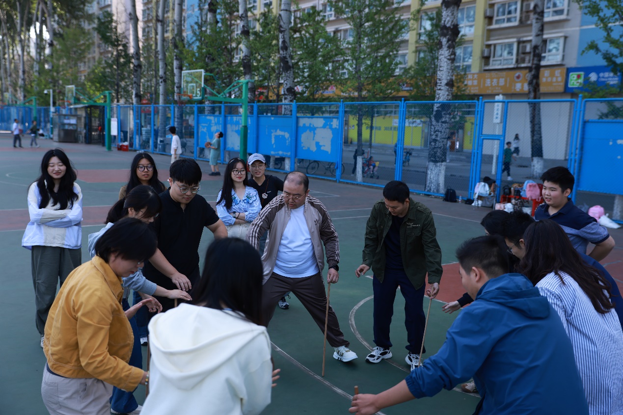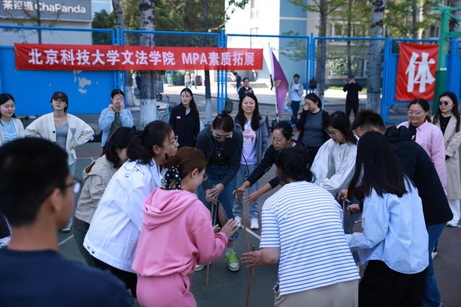 “同心同行,共创辉煌!”“文法八组,势如猛虎!”各小组响亮的口号此起彼伏,彰显着MPA学子的精神风貌。在体育51吃瓜 专业教练的指导下,“不倒翁”项目率先展开。同学们围成同心圆,手持木棍凝神以待。“三、二、一,移!”令声刚落,身影闪动,同学们敏捷地移动步伐,稳稳接住旁边同伴的木棍。这一刻,专注的眼神、默契的配合、会心的微笑,构成了一幅动人的画面。