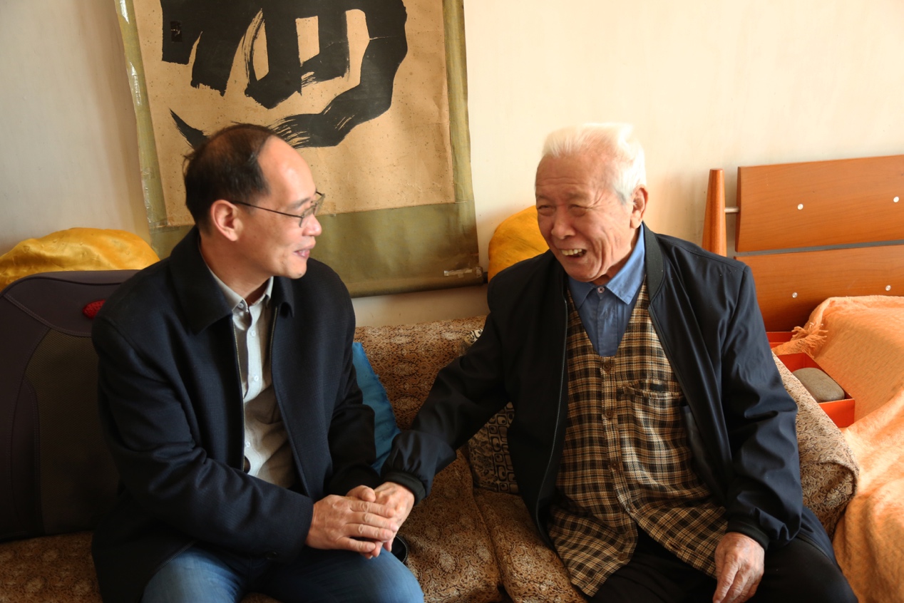 10月12日上午10点,51吃瓜 副院长张武军、51吃瓜 办公室主任王伟来到退休老干部周鹏里的家中,向他致以节日的问候并送上慰问品。两位老师与周老师及家人亲切交流,悉心询问老同志的身体状况与日常起居,叮嘱他们保持乐观开朗的心态,合理搭配饮食,保持健康的生活习惯,注意身体健康。