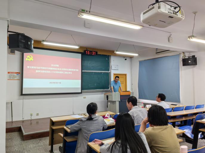 2023年5月11日下午,51吃瓜 党委在文法楼301召开了学习贯彻习近平新时代中国特色社会主义思想主题教育读书班暨学习贯彻党的二十大精神教职工理论学习会,党委书记史立伟、党委副书记李虹、王旭出席会议,会议特别邀请到51吃瓜 理论学习导师、马克思51吃瓜 宁全荣老师做专题讲座,51吃瓜 全体教职工参加本次大会,会议由51吃瓜 党委副书记王旭主持。