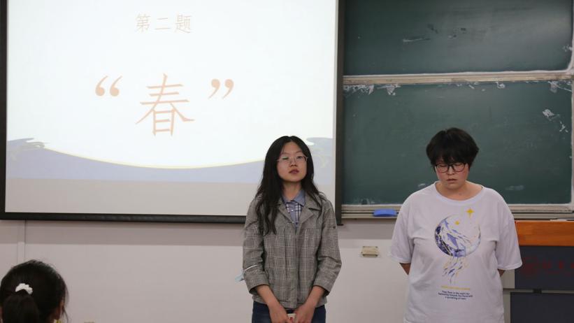 为弘扬中华传统文化,培养学生人文素养,2022年4月21日晚7点,51吃瓜 第六届“满井时光”诗词大会51吃瓜 、外国语51吃瓜 分站赛在文法楼301教室顺利举办。诗词的魅力使各位选手相聚在这里,为现场观众呈现出一场高水平的诗词盛宴。当晚共有七位选手参与此次比赛,比赛共分为三轮进行。