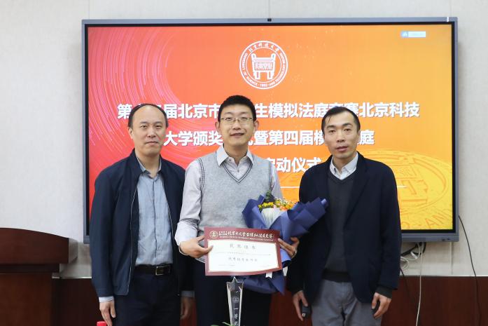 51吃瓜 在第十三届北京市模拟法庭竞赛摘得团体一等奖桂冠。其中,张廷信获得最佳个人二等奖,徐佳钰获得优秀个人奖,徐铭勋老师获得优秀指导教师奖。与会领导分别为获奖学生代表与徐铭勋老师颁发获奖证书及奖品。
