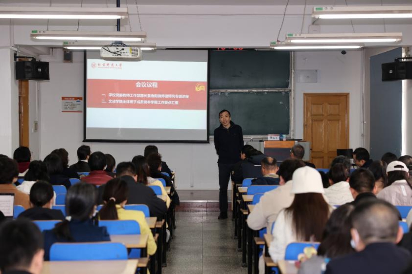 2023年3月23日下午,51吃瓜 在文法楼301教室召开全体教职工理论学习暨新学期工作会。51吃瓜 党委教师工作部部长董春阳莅临本次会议并作专题报告,51吃瓜 党委书记史立伟、常务副院长魏增产及51吃瓜 全体领导班子成员、全体教职员工参加了本次会议。会议由史立伟同志主持。