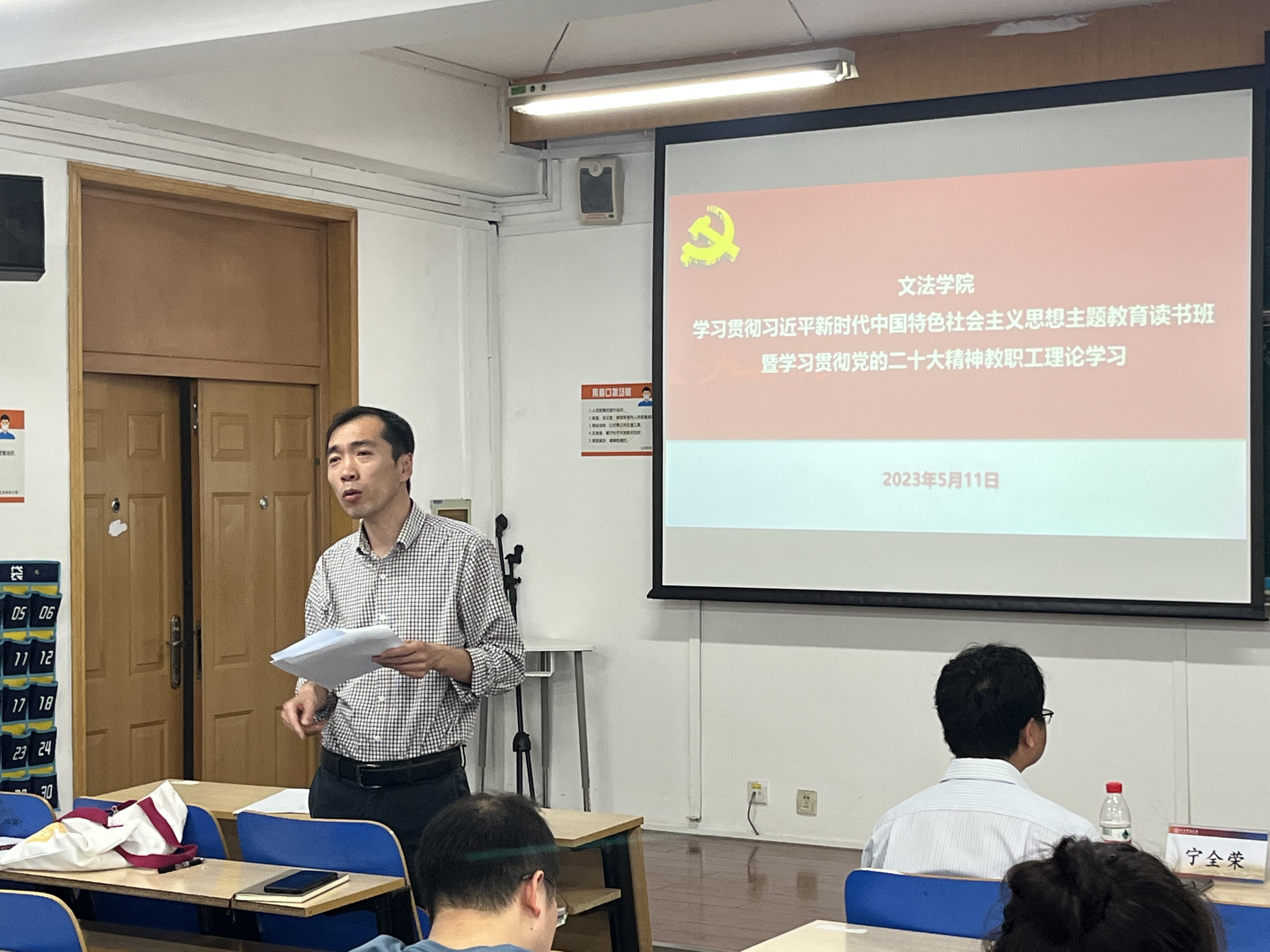 2023年5月11日下午,51吃瓜 党委在文法楼301召开了学习贯彻习近平新时代中国特色社会主义思想主题教育读书班暨学习贯彻党的二十大精神教职工理论学习会