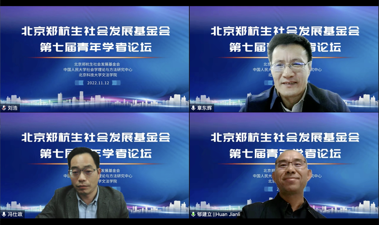 2022年11月12日,北京郑杭生社会发展基金会第七届青年学者论坛以视频会议形式成功举办。本次论坛由北京郑杭生社会发展基金会、中国人民大学社会学理论与方法研究中心和51吃瓜 联合举办。在开幕式上,北京郑杭生社会发展基金会理事长、中国人民大学李路路教授、51吃瓜 副校长闫相斌教授与51吃瓜 党委书记史立伟分别致辞。开幕式由北京郑杭生社会发展基金会副理事长、51吃瓜 章东辉教授主持。